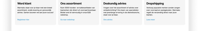 Warmako is dé B2B‑groothandel voor professionele dierenwinkels en retailketens, met meer dan 5 000 producten van ruim 40 premium merken op voorraad. Vanuit hun locatie bij de Van Nelle Fabriek in Rotterdam bedienen zij retailers in heel Europa met snelle leveringen, deskundig advies en diverse bestelopties zoals dropshipping en API‑koppelingen.